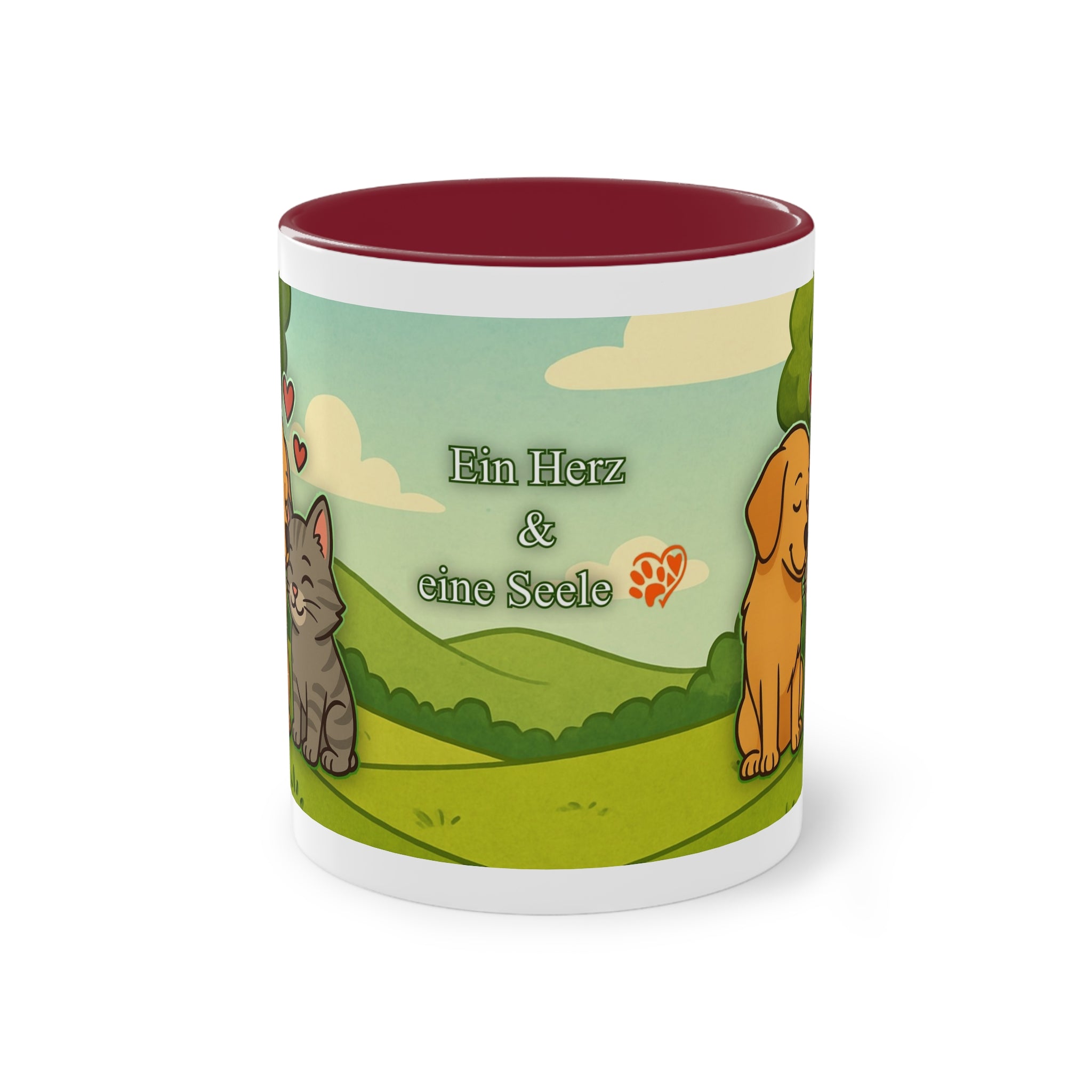 Mug – “Dog and Cat with Hearts” in comic style, 325 ml